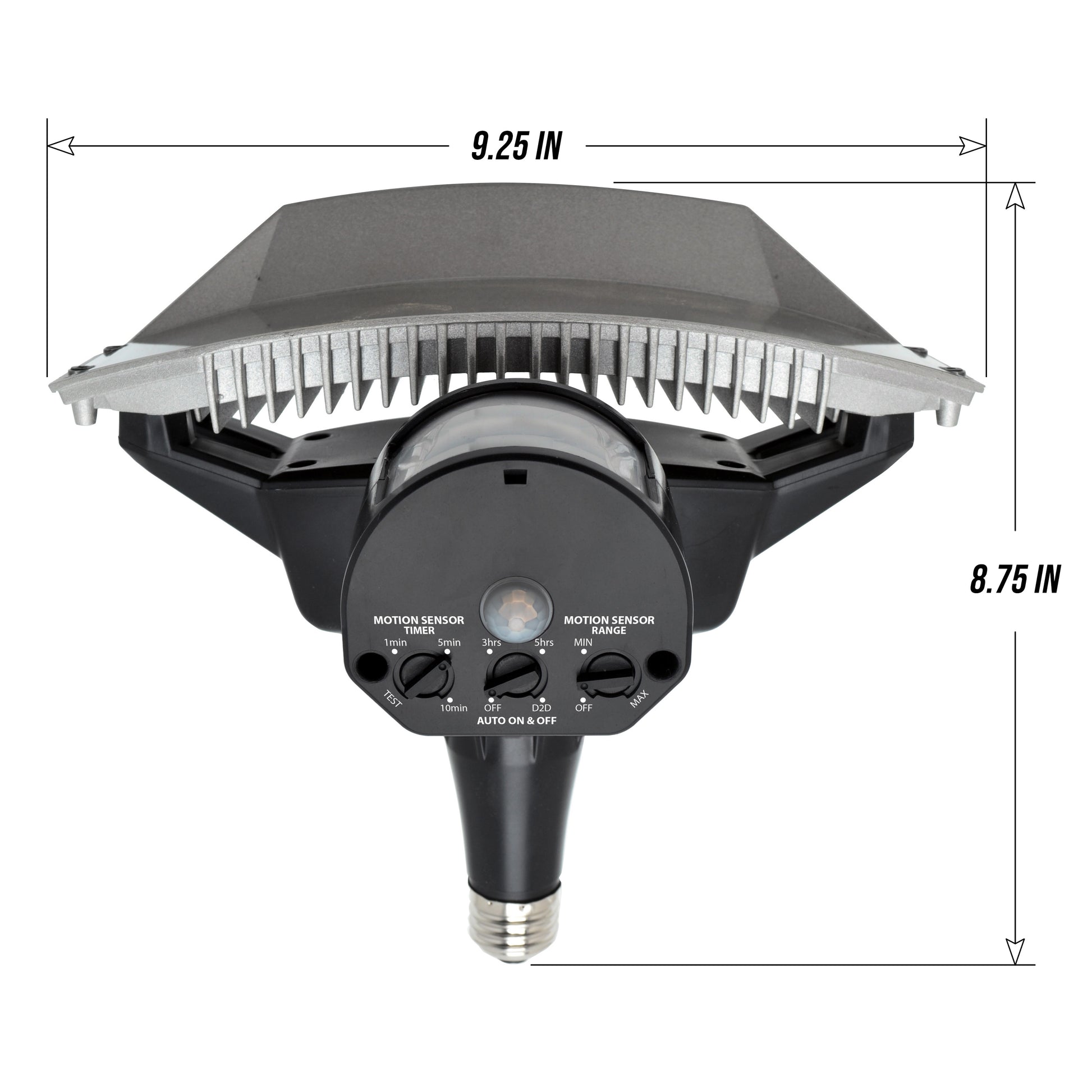 - Dual Power Output: If the motion and light sensor are both on, the light will glow at half power until there is motion, then switching into full power.