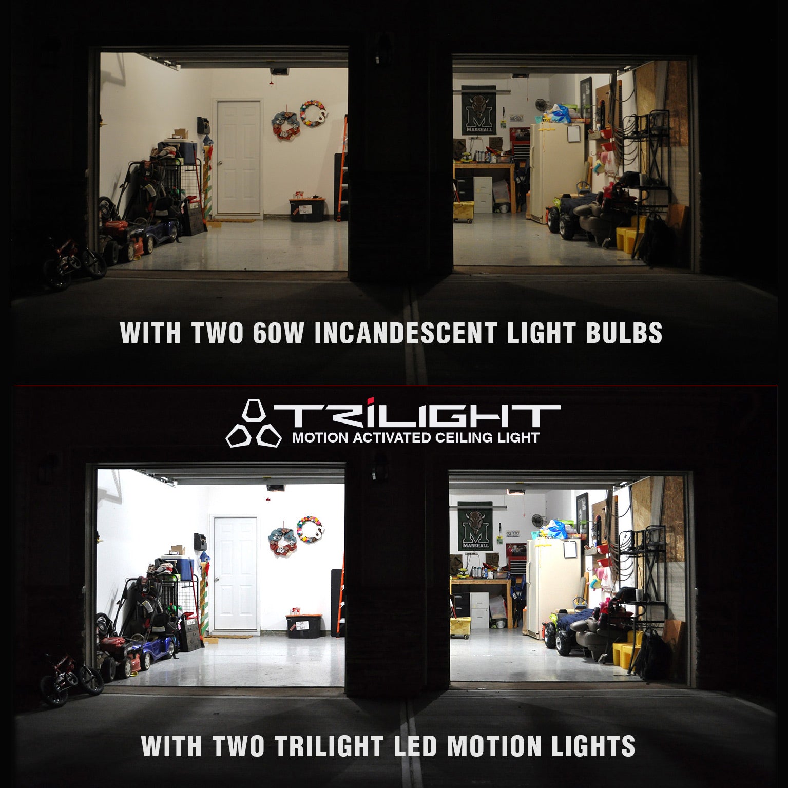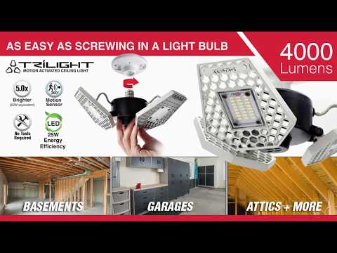 - La luz de techo LED con sensor de movimiento TRiLIGHT reemplaza la bombilla de luz tenue que normalmente se encuentra en su garaje. sótano o cuarto de servicio. Actualizar a 4000 luces LED TrueLumens Bright White y activación por movimiento es igual de fácil ¡Como atornillar una bombilla! ¡Ahora con sensibilidad de movimiento ajustable!