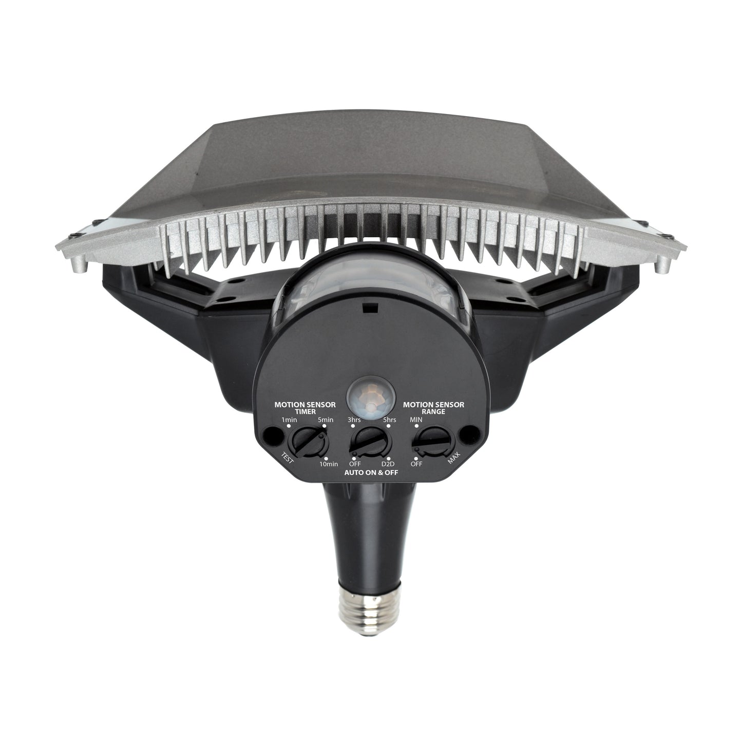 - Dual Power Output: If the motion and light sensor are both on, the light will glow at half power until there is motion, then switching into full power.