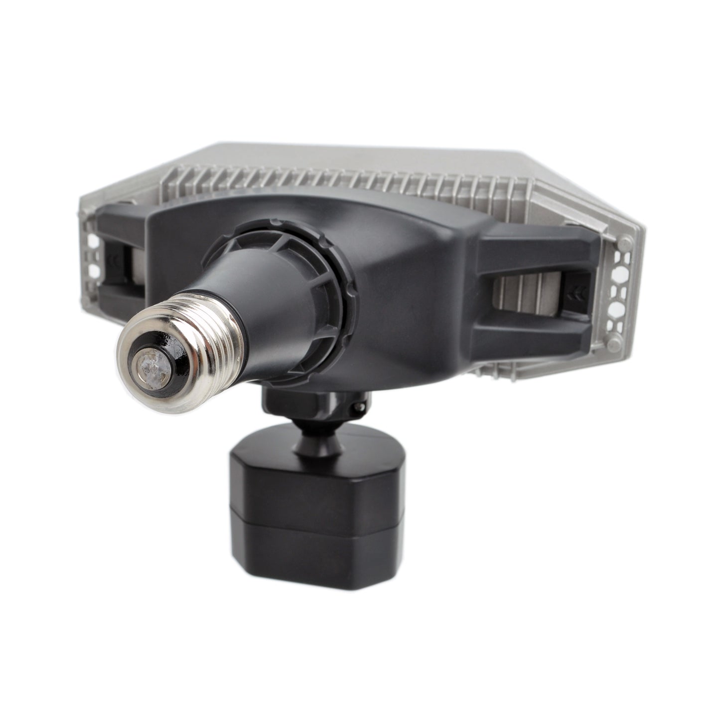 The Outdoor Motion Security Light screws directly into most existing outdoor security flood light fixtures. Its patented screw-in system ensures easy installation, even in tight spaces or eaves, allowing precise mounting and sensor positioning.